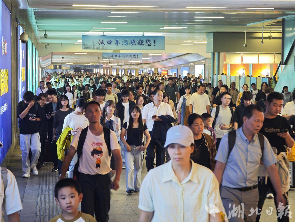 10月8日,返程旅客抵达汉口火车站。通讯员 宋萍 摄