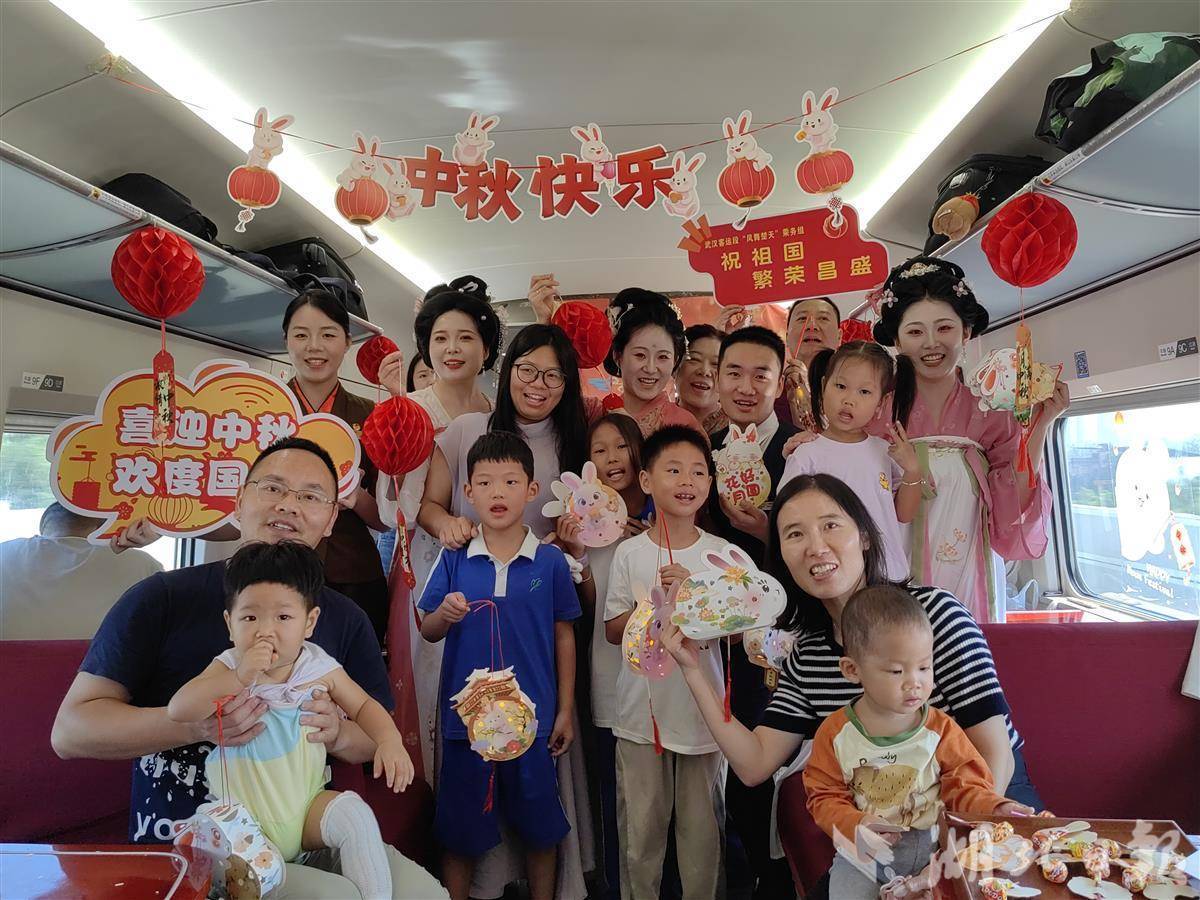 武汉客运段工作人员与旅客共度中秋节。通讯员 徐媛媛 摄